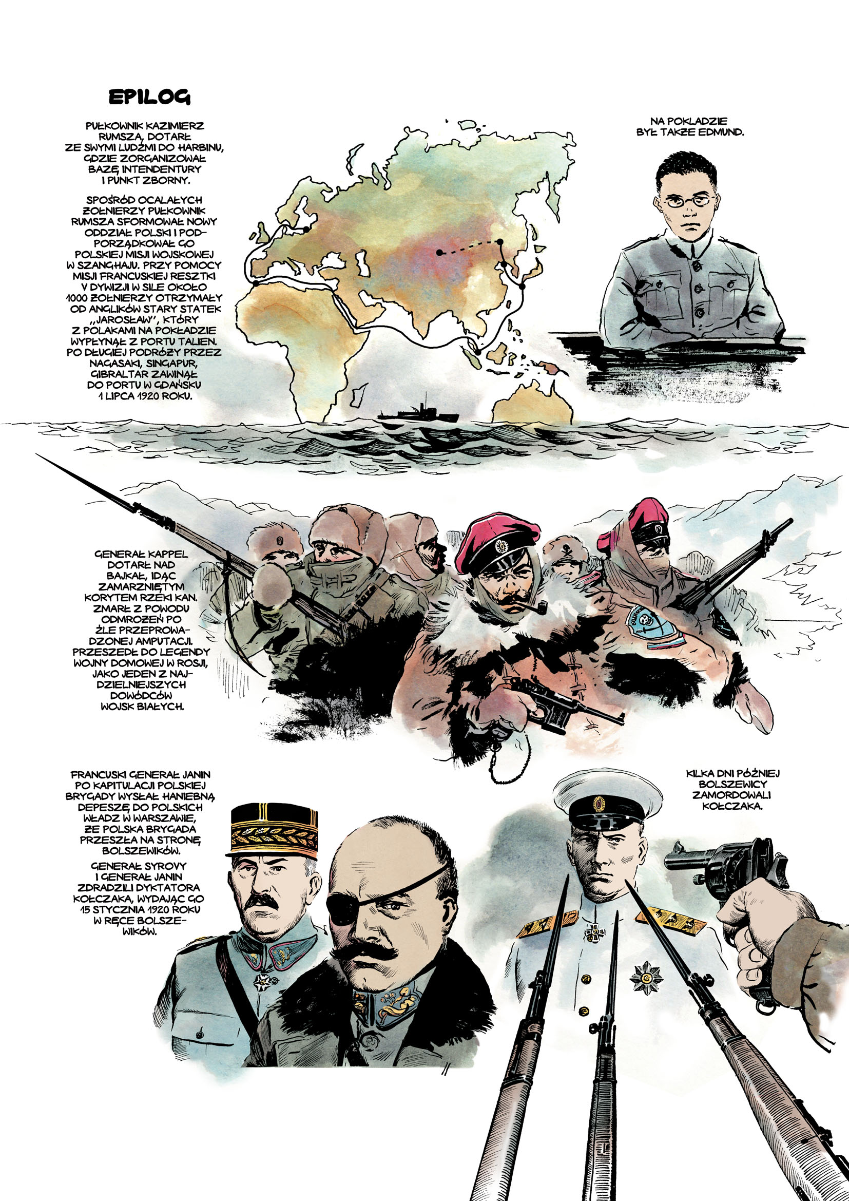 Gotowość walki Polaków o wolną Ojczyznę była w XX wieku powszechnie znana. W czasie I wojny światowej na całym świecie pojawiały się różnego rodzaju inicjatywy, których wspólnym mianownikiem była wizja odrodzonego Państwa Polskiego. Na terenie Rosji w niezwykle trudnych warunkach rozkładu armii rosyjskiej, później zaś przewrotu bolszewickiego i wojny domowej działały trzy polskie korpusy oraz szereg mniejszych jednostek wojskowych. Historię jednej z nich – 5 Dywizji Syberyjskiej – przypomina komiks Oddziału IPN w Warszawie pt. „Pochód zimowy”.