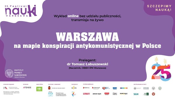 08/12/2021Premiera„Warszawa na mapie konspiracji antykomunistycznej w Polsce” – wykład online dr. Tomasza Łabuszewskiego