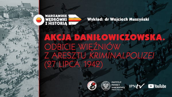 14/11/2022Posłuchaj„Akcja Daniłowiczowska. Odbicie więźniów z aresztu Kriminalpolizei (27 lipca 1942)”– wykład online dr. Wojciecha Muszyńskiego w ramach cyklu „Warszawskie wędrówki z historią” – Warszawa, 15 listopada 2022