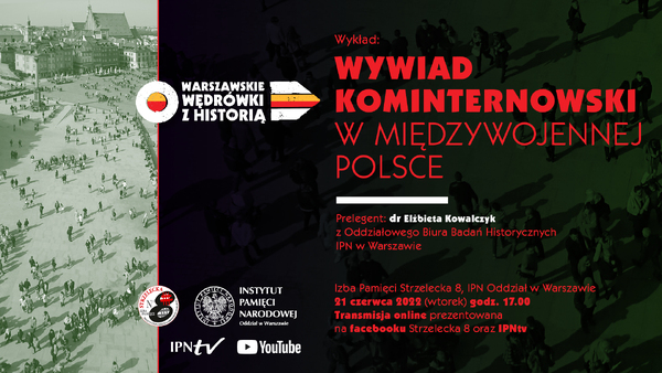 20/06/2022Obejrzyj„Wywiad kominternowski w międzywojennej Polsce”– wykład w ramach cyklu „Warszawskie wędrówki z historią” – Warszawa, 21 czerwca 2022