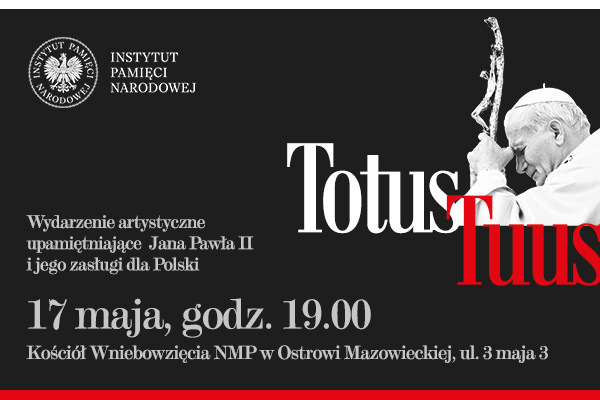 11/05/2023ZapowiedźTotus Tuus – wydarzenie artystyczne upamiętniające Jana Pawła II i jego zasługi dla Polski – Ostrów Mazowiecka, 17 maja 2023