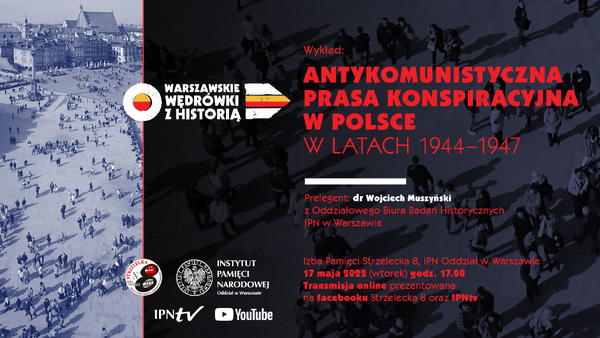 16/05/2022Retransmisja„Antykomunistyczna prasa konspiracyjna w Polsce w latach 1944-1947” – wykład w ramach cyklu „Warszawskie wędrówki z historią” – Warszawa, 17 maja 2022