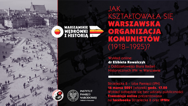 09/03/2021Retransmisja„Jak kształtowała się warszawska organizacja komunistów (1918–1925)?” – wykład online w ramach cyklu spotkań na Strzeleckiej 8 pt. „Warszawskie wędrówki z historią” – Warszawa, 16 marca 2021 (Transmisja na facebooku Strzelecka 8 i IPNtv).