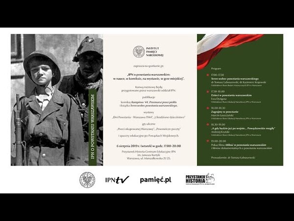 06/08/2019Retransmisja„IPN o Powstaniu Warszawskim: w nauce, w komiksie, na wystawie, w grze miejskiej”
