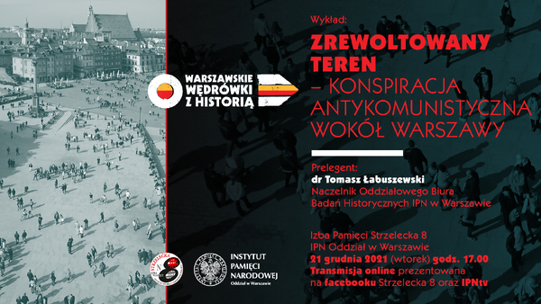 16/12/2021Retransmisja„Zrewoltowany teren – konspiracja antykomunistyczna wokół Warszawy” – wykład w ramach cyklu: „Warszawskie wędrówki z historią” – Warszawa, 21 grudnia 2021