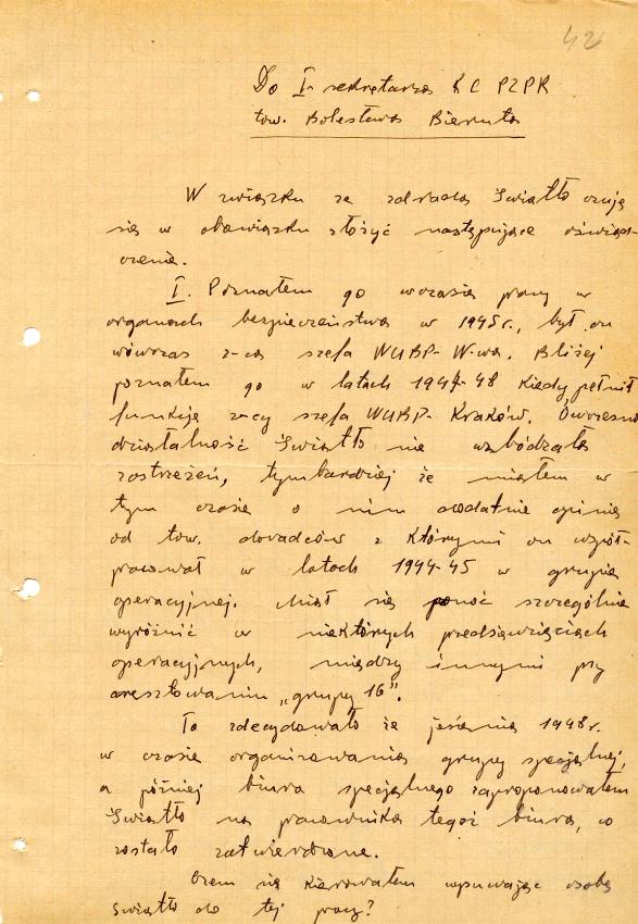 Raport gen. Romana Romkowskiego do I Sekretarza KC Bolesława Bieruta, dotyczący Józefa Światły, sporządzony po jego ucieczce na Zachód
