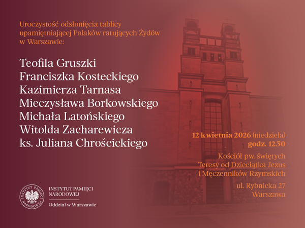 Uroczystość odsłonięcia tablicy upamiętniającej Polaków ratujących Żydów pod okupacją niemiecką – Warszawa, 12 kwietnia 2026